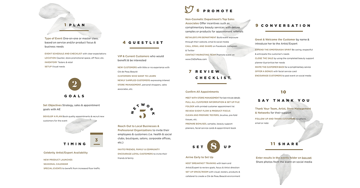 Digital guidelines for Clé De Peau MUAs across all retail locations. These guidelines were designed to align with the brand’s high-prestige image. Providing a seamless and sophisticated framework that is easy to comprehend to deliver exceptional customer experience.