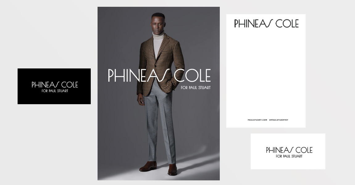 Visual identity for Phineas Cole, the high-end extension of Paul Stuart, featuring a custom Art Deco font with vintage-inspired elements. This logo perfectly captures the brand's unique character while enhancing its premium image.